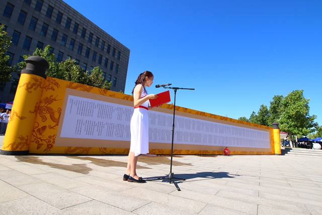 迎新現(xiàn)場(chǎng)設(shè)置了國(guó)學(xué)經(jīng)典誦讀,引導(dǎo)新生從傳統(tǒng)文化中思考立德修身的理念(本圖由校記者團(tuán)提供)
