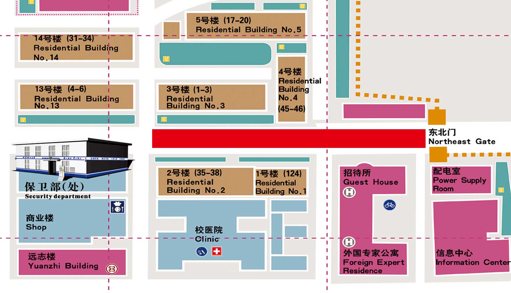 2015年9月9日至9月16日,中關村校區(qū)校園北路東段新建機電實驗中心室外雨水管道將要進行施工,具體施工路段如圖紅色區(qū)域。由于校園北路是中關村校區(qū)北邊重要的交通干道,此次破路施工將會影響車輛通行。為了保證施工期間的人員與車輛安全,同時也保障工程的有序進行。在施工期間,東北門大門關閉,機動車禁止通行,請繞行學校其他大門進出。請廣大師生、車主提前規(guī)劃好自己的行車路線。