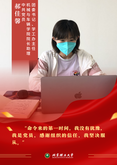 “作為一名退伍軍人,深受部隊教育,就是要退伍不褪色。我很喜歡北理工這所紅色大學。只要需要我,我就會挺身而出,堅決完成抗疫工作。”米龍龍語氣堅定。