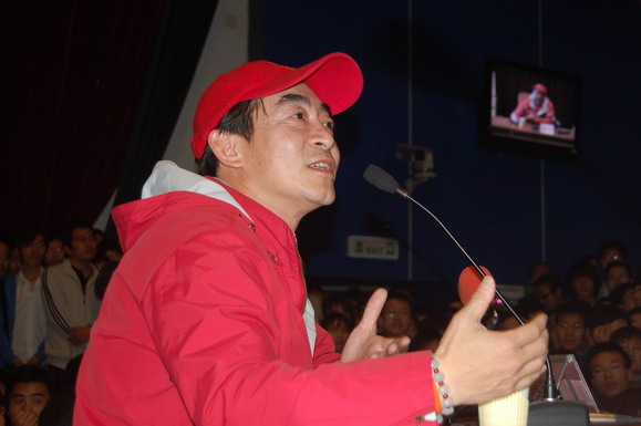 2007年4月16日晚7:00“聆聽智慧”名家論壇的第十七期在中心教學(xué)樓一層報(bào)告廳舉行。中國(guó)最經(jīng)典的電視劇《西游記》中孫悟空的扮演者章金萊老師應(yīng)邀來到我校,為我?guī)熒鲱}為《六小齡童品西游》的專題講座。