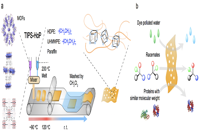 通過TIPS和熱壓方法(TIPS-HoP)相結合可以實現制備具有良好機械性能的大面積超高功能多孔材料擔載量(例如共價有機框架材料、活性炭、分子篩等)的分離膜,具有很好的普適性以及實際生產價值,有望應用于水處理、氣體分離、手性分離等多個應用領域。