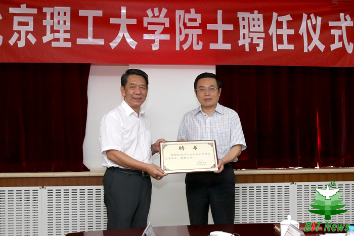 梅宏副校長代表學校對吳偉仁院士受聘北京理工大學院士表示熱烈歡迎,陳杰副校長對吳偉仁院士的研究領域、學術成果進行了介紹,胡海巖校長為吳偉仁院士頒發了聘任證書。