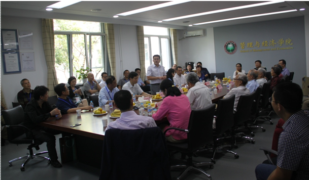 上午十點半,管理與經濟學院1986屆校友一行來到主樓133會議室觀看了學院的宣傳視頻,紛紛對學院的發展與建設表達了關心與支持,之后,王兆華等學院領導邀請校友們到340會議室與學院多位退休老教師進行座談會,向校友們深入地介紹學院近年的發展與建設。