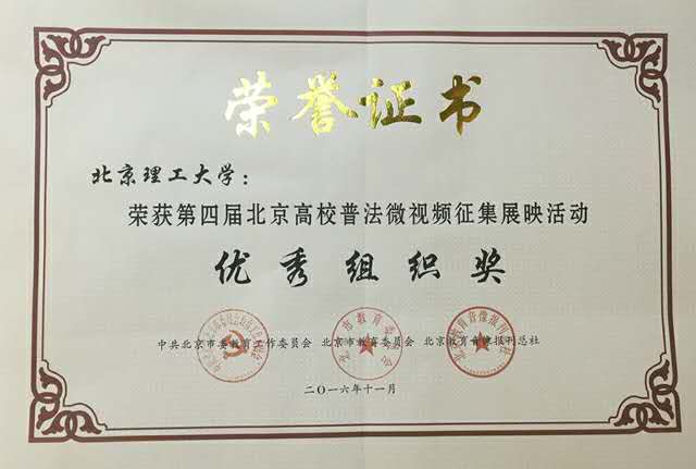 北京理工大學一貫重視法制宣傳教育工作,師生法制觀念不斷增強,依法治校的管理水平不斷提高。近年來,學校積極深化落實普法工作開展,每年均在校內廣泛征集和遴選優秀校園普法微視頻,并積極向北京市教工委、教委選送推薦。報送作品在歷屆征集展映活動中均獲得高名次獎項,不僅在全校范圍內營造良好的法治氛圍,體現我校在普法宣教工作方面的積極風貌,也展示出我校師生在媒體作品創作方面的能力水平。
