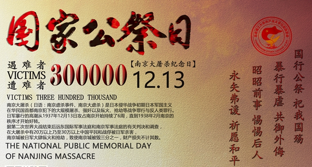 國行公祭,祀我同胞,2016年12月13日是侵華日軍南京大屠殺遇難同胞79周年祭日,也是第三個南京大屠殺死難者國家公祭日。在此期間,北京理工大學各校級學生組織開展 “國家公祭日”系列主題紀念活動,深切悼念南京大屠殺死難者和所有在日本帝國主義侵華戰爭期間慘遭殺戮的同胞,引導廣大青年學生緬懷先烈、以史為鑒,將激昂的愛國情懷轉化為矢志學習鉆研、推動中華民族偉大復興中國夢實現的青春力量。