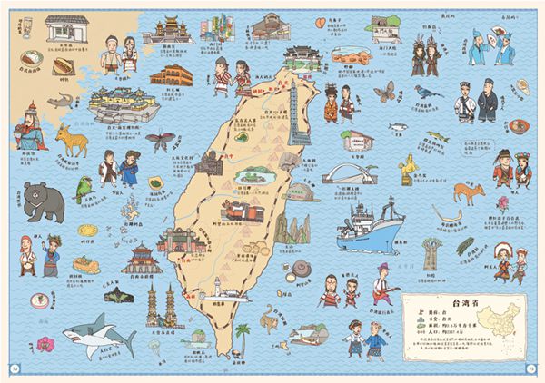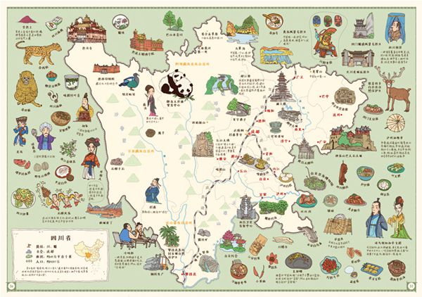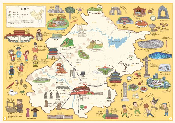 《中國:手繪中國地理地圖》針對5-12歲少年兒童設計。內容涵蓋中國23個省、4個直轄市、5個自治區和2個特別行政區。用繪本的方式呈現了各行政區的行政邊界、地形地貌、風景名勝、交通、植被、動物、人口組成、人文遺址、礦產資源、美食、甚至民風習俗、歷史名人等。全文四色手繪,全彩印刷,通過直觀的手繪地圖,外加豐富的知識點采集,組成了一本適合孩子閱讀的生動地理百科繪本,讓小讀者清晰的認知中國各個地區的地理知識。