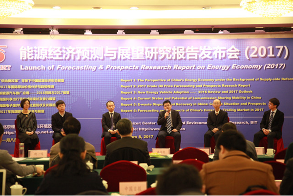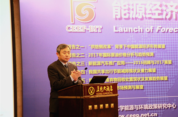 2017年1月8日,北京理工大學(xué)能源與環(huán)境政策研究中心在北京舉行2017年度“能源經(jīng)濟(jì)預(yù)測(cè)與展望研究報(bào)告發(fā)布會(huì)”,對(duì)外發(fā)布《‘供給側(cè)改革’背景下中國(guó)能源經(jīng)濟(jì)形勢(shì)展望》、《2017年石油產(chǎn)業(yè)前景預(yù)測(cè)與展望》、《新能源汽車推廣應(yīng)用:2016回顧與2017展望》、《我國(guó)共享出行節(jié)能減排現(xiàn)狀及潛力展望》、《我國(guó)電子廢棄物回收處置現(xiàn)狀及發(fā)展趨勢(shì)展望》、《2017年我國(guó)碳市場(chǎng)預(yù)測(cè)與展望》六份研究報(bào)告。該系列報(bào)告是由長(zhǎng)江學(xué)者、國(guó)家杰出青年科學(xué)基金獲得者魏一鳴教授領(lǐng)導(dǎo)的研究團(tuán)隊(duì)根據(jù)上一年度國(guó)際和國(guó)內(nèi)能源經(jīng)濟(jì)與氣候政策形勢(shì)的變化,選擇特定主題開展的針對(duì)性研究,形成的政策咨詢報(bào)告。自2011年以來(lái),中心連續(xù)七年發(fā)布報(bào)告,贏得了廣泛的社會(huì)反響。