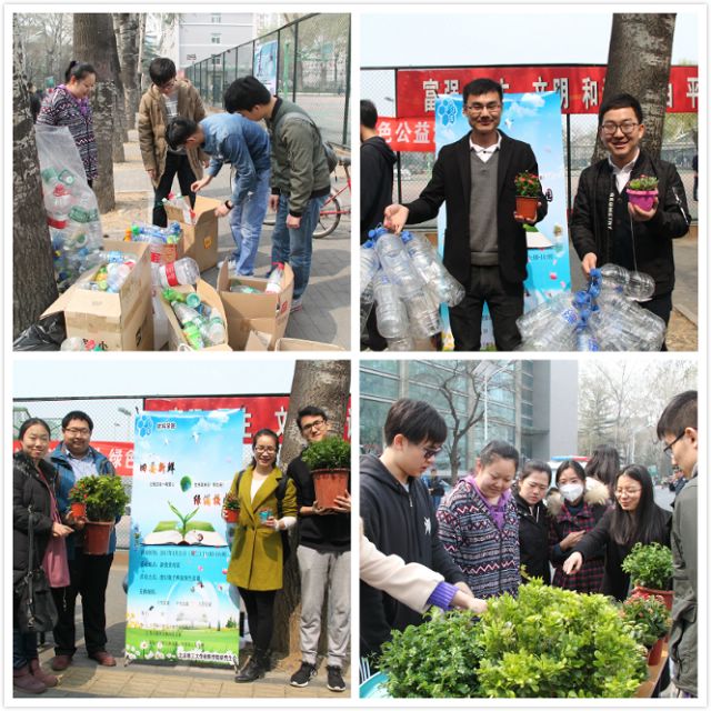 “舊要新鮮,綠滿校園”環(huán)保公益活動(dòng),收集對(duì)環(huán)境的一份尊重,換得一抹賞心悅目的綠色,用廢舊瓶子換取心儀盆栽,讓環(huán)保從你我做起,為共同建設(shè)綠色校園、美好校園貢獻(xiàn)自己的一份力量。