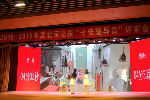 此前,我校通過學院推薦、專家評審、網絡公示等程序進行校內選拔,最終確定計算機學院張楊為北京高校“十佳輔導員”推薦人選并向北京市委教育工委提交申報材料。在接到參加評審會現場展示的通知后,學生工作處第一時間牽頭組建視頻制作和選手培訓的專家團隊,成員包括宣傳部、計算機學院、數學與統計學院、人文與社會科學學院、設計與藝術學院的專業制作人員和指導專家,在短短的4天時間內,制作完成以“信仰歸來”為主題的既展現個人工作事跡風采又反映我校“延安根?軍工魂”特色文化的展示視頻,同時,梳理我校輔導員日常工作中的典型事務和突發應急事件處理案例,與張楊一起分析并模擬演練。