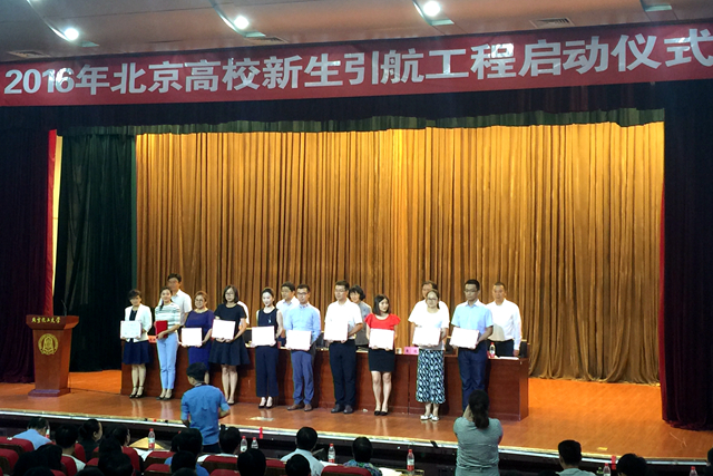 9月9日下午,北京市教工委在北京化工大學科學會堂召開2016年北京高校新生引航工程啟動儀式,并對2015-2016年度北京高校德育先進工作集體及個人進行了表彰。