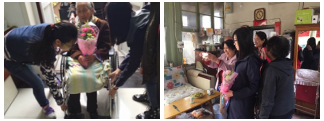 獻花活動后,學生黨員分別同社區(qū)管理員一起到行動不便、不能前往活動的老黨員家中慰問看望。學生黨員關切地詢問了老人的身體健康情況和家庭情況,轉(zhuǎn)達了學院黨委的問候。