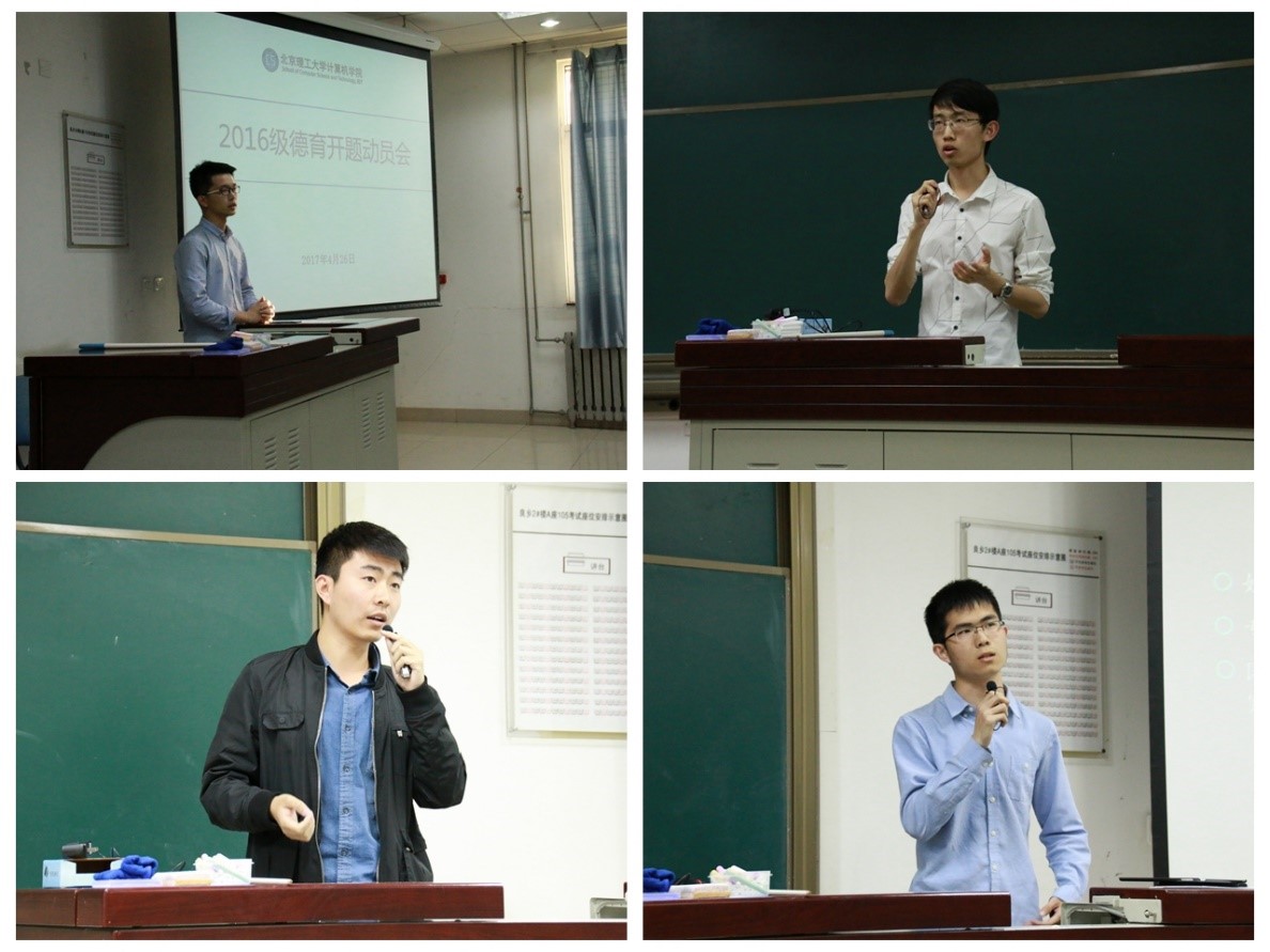 2017年4月26日18:00,北理工計算機學院2016級本科生德育開題動員會在良鄉校區綜合教學樓A105舉行。計算機學院黨委副書記、副院長奚英倫,分團委書記郝志敏出席本次動員會,會議由2016級本科生輔導員惠寧主持。