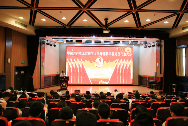 2018年8月26日上午,中國共產黨北京理工大學計算機學院代表大會在7號樓報告廳召開。黨委書記丁剛毅代表計算機學院黨委向大會作了題為《同心戮力,改革謀新,聚力建設中國特色世界一流的計算機學院》的工作報告。大會選舉產生新一屆中共北京理工大學計算機學院委員會。北京理工大學副校長、中國科學院院士梅宏,黨委組織部副部長周波,學院離退休黨員代表吳鶴齡、趙建華、高永峰,黨外人士代表馬波、李鳳霞、李鵬、譚毓安受邀列席大會。大會由計算機學院黨委副書記、副院長奚英倫主持。