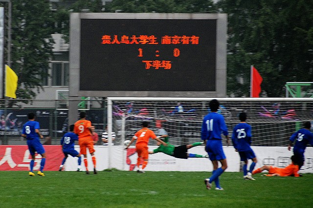 下半場主隊開始加強進攻,第63分鐘武方虎左路突破造成對方犯規,獲得任意球機會,阿爾法主罰,皮球直接吊向禁區,康斯貝在亂軍當中頭球建功。北理工1比0領先南京有有。