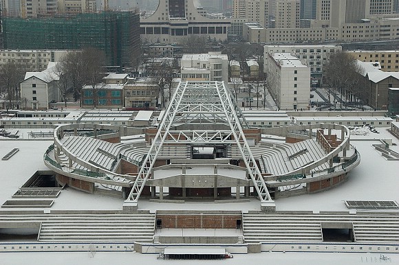 2005年2月24日,雪后的體育館主體鋼結構已然成型。