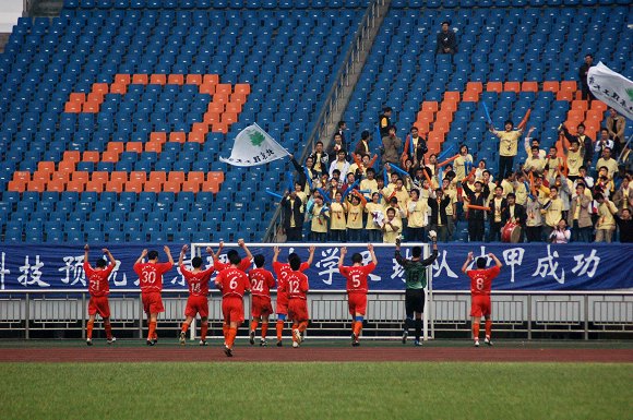 在聯賽的主場時,北理工也是在首先失球的情況下以1:1與火車頭戰平,這兩場先失后得的比賽使隊員加強了自信,相信隊員們下一回合會越打越好,我們并沒有像某些人預測的那樣會大比分倒下,“鹿死誰手,尚未可知!”,讓我們繼續為北理工加油!