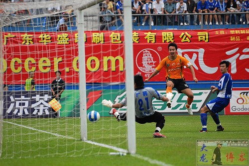 第71分鐘,李志海右側(cè)45度傳中,杰弗森力壓對(duì)方后衛(wèi)側(cè)身右腳掃射打進(jìn)左上角破網(wǎng),廣州醫(yī)藥隊(duì)3-2反超。第77分鐘,楊鵬鋒右側(cè)開(kāi)出角球,對(duì)方后衛(wèi)解圍不遠(yuǎn),高明外圍左腳抽射偏出。