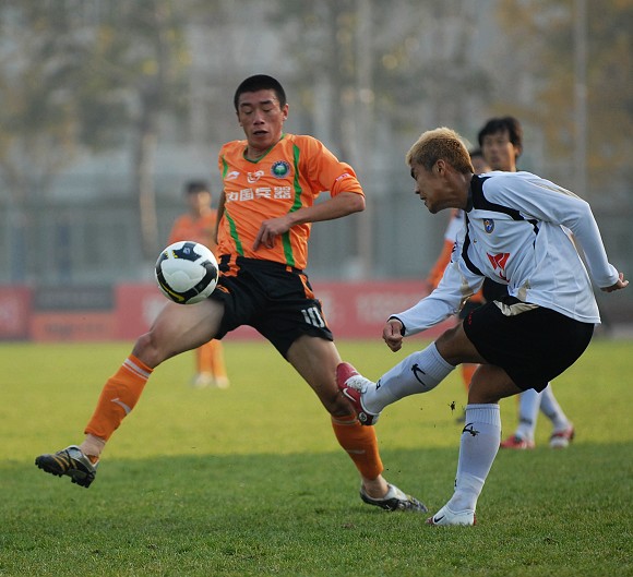 落后的延邊隊攻勢有所加強,但北理工的防守隊員并沒有給對方太多的機會。第33分鐘,延邊隊隊長韓松峰在禁區前一腳冷射稍稍偏出。1分鐘后,愛國者隊還以顏色,張淼在禁區前沿的遠射被對方后衛封堵,隨后楊思源接角球后的頭球攻門稍稍高出。