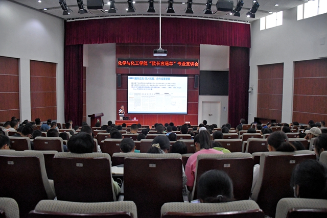 張加濤以復合型市場對化學化工行業人才需求為引,通過生動的事例,向同學們展示了為什么學習化學化工、學好化學化工能做什么。張加濤介紹了化學與化工學院歷史沿革、師資力量、科學研究、專業特色、人才培養和國際交流等信息,通過直觀的數據、全方位的分析,展示了化學與化工學院的實力。