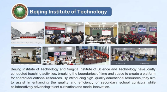 學校與寧夏理工學院開展的“AI+慕課西部行”以慕課西行為牽引,探索建立教師發展聯合體、教研共同體,兩校共建虛擬教研室、共創智慧實驗室、共同開展同步課堂,打造了基于人工智能技術的“智慧西行”范例。