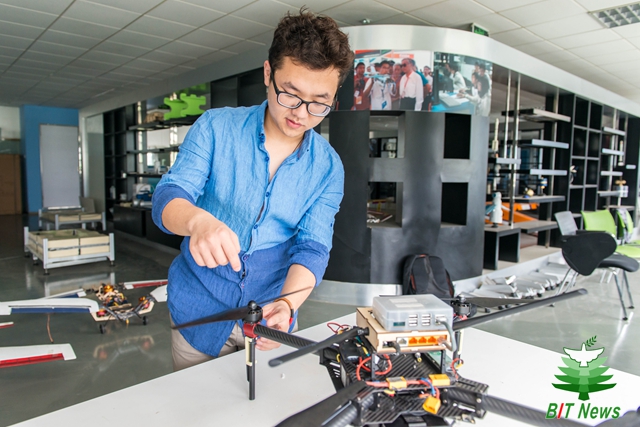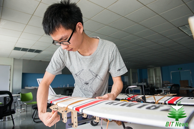 研二同學劉真暢,就在這個大家庭長大。“我想做一架能體現我創(chuàng)意的飛機”,劉真暢在大二那年,走進了這個基地,加入航模隊,從此就再也沒離開過。從初來乍到時,師兄手把手“傳幫帶”,到現在成為團隊的核心,劉真暢把“最美的時光”無怨無悔地交給了基地。他的團隊,在這兩年間,結合北理工獨有的導彈設計理論,做出一架“深入樓宇之間、精確擊打車輛等小型目標”的“低空無人機”。這種在美國大片里才能看到的戰(zhàn)斗機,被劉真暢搬到了現實中。