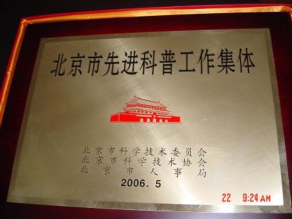 2006年6月,我校科協(xié)獲得了由北京市科學(xué)技術(shù)委員會(huì)、北京市科學(xué)技術(shù)協(xié)會(huì)、北京市人事局聯(lián)合頒發(fā)的"北京市先進(jìn)科普工作集體"榮譽(yù)稱號(hào),以表彰我校科協(xié)在"弘揚(yáng)科學(xué)精神、普及科學(xué)知識(shí)"方面取得的成績(jī)。這是我??茀f(xié)成立以來(lái)第一次獲得北京的最高科普榮譽(yù)獎(jiǎng)。北京市設(shè)有科協(xié)組織的高校只有我校一家榮獲此殊榮。