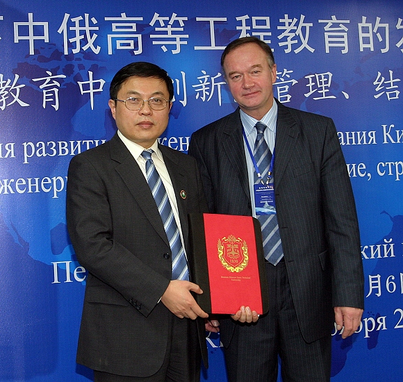 本次活動是一次大規模、高層次的中俄高等教育交流活動。除在我校舉行外,還在哈爾濱工業大學、哈爾濱工程大學成功舉辦,這對增進中俄兩國工程教育界之間的相互交流與合作發揮了重要作用。胡海巖校長與莫斯科鮑曼國立技術大學教學法副校長、俄羅斯代表團團長科爾舒諾夫.謝爾互贈紀念品。