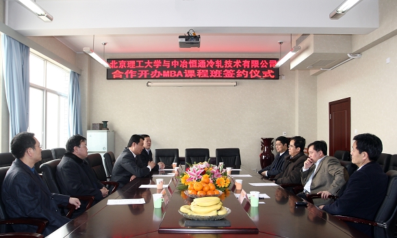 2009年3月4日,我校與中冶恒通冷軋技術有限公司在我校舉行了合作開辦MBA課程進修班簽字儀式。中冶恒通冷軋技術有限公司韓繼征董事長兼總經理、董平副總經理,我校副校長、研究生院院長孫逢春教授、研究生院薛唯常務副院長、管理與經濟學院魏一鳴院長及相關部門負責人出席了儀式,儀式由管理與經濟學院李金林書記主持。董平副總經理、薛唯教授和魏一鳴教授分別代表中冶恒通公司、研究生院和管理學院分別在合作協議書上簽字。